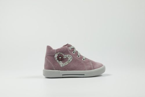 Rózsaszín , oldalán ezüst díszítésű gyermekcipő.